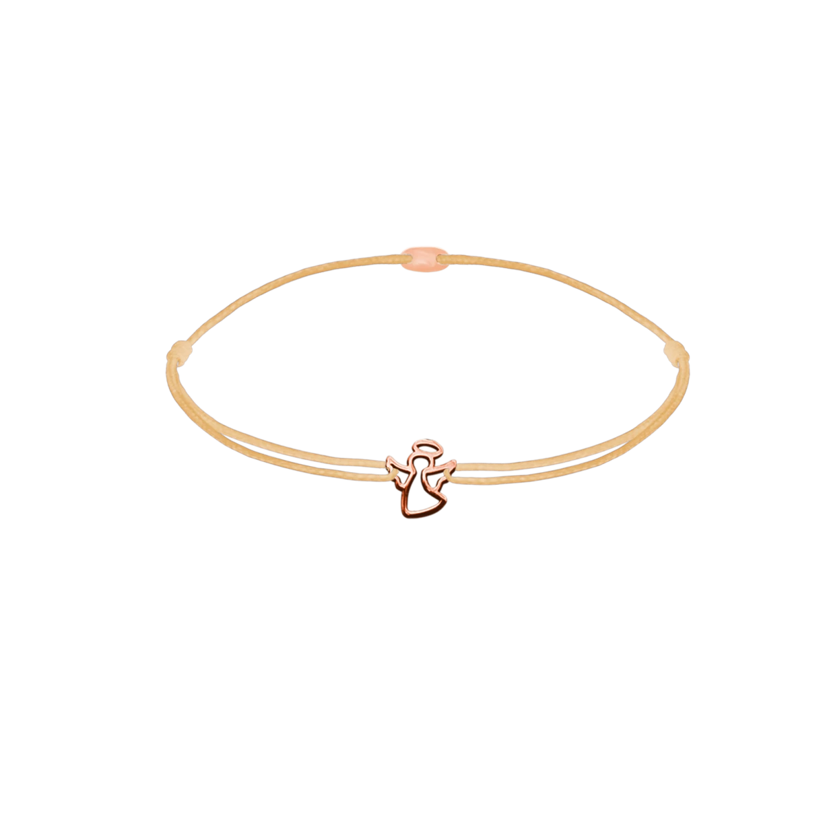 Náramek na šňůrce pro miminko s obrysem anděla se svatozáří z růžového zlata 14K