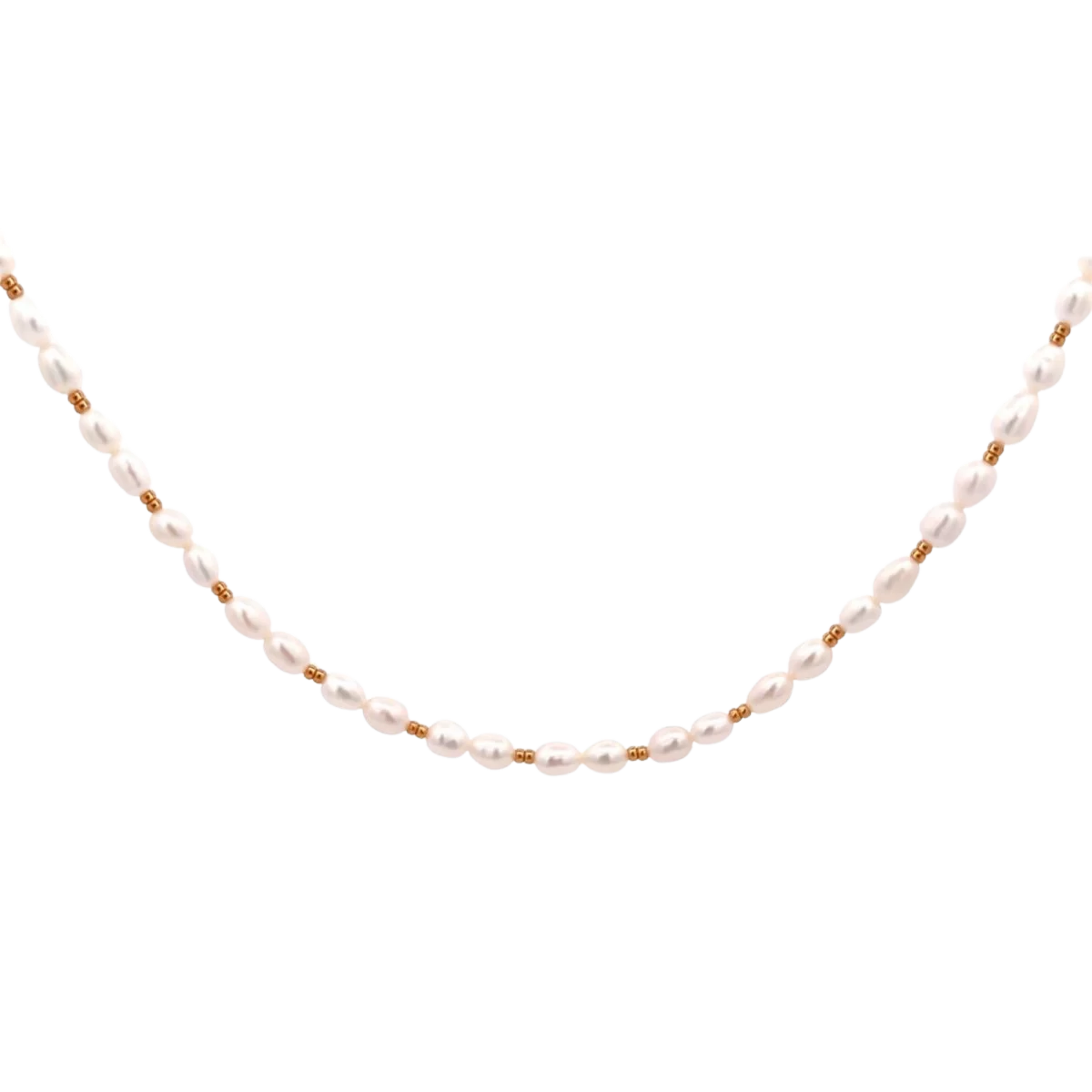 Elegantní, poutavá kombinace bílých sladkovodních perel a žlutých zlatých korálků. Vypadá obzvlášť dobře na opálené pokožce a je to velmi atraktivní kousek. Přitáhni pozornost a ukaž své nové šperky!