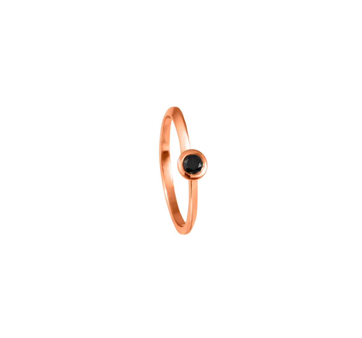 Prsten z červeného zlata 14K s knoflíkem osazeným černými diamanty