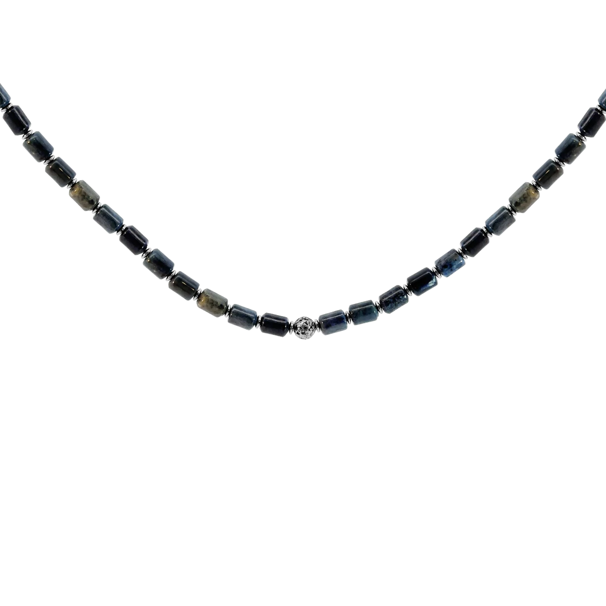 Pánský náhrdelník z dumortieritu, hematitu a lávového kamene je stylovým doplňkem pro moderního muže. Kombinace těchto minerálů podtrhuje sílu a sebevědomí, zároveň podporuje vnitřní klid a pomáhá zvládat stres. Ideální šperk pro každodenní nošení i výjimečné příležitosti.