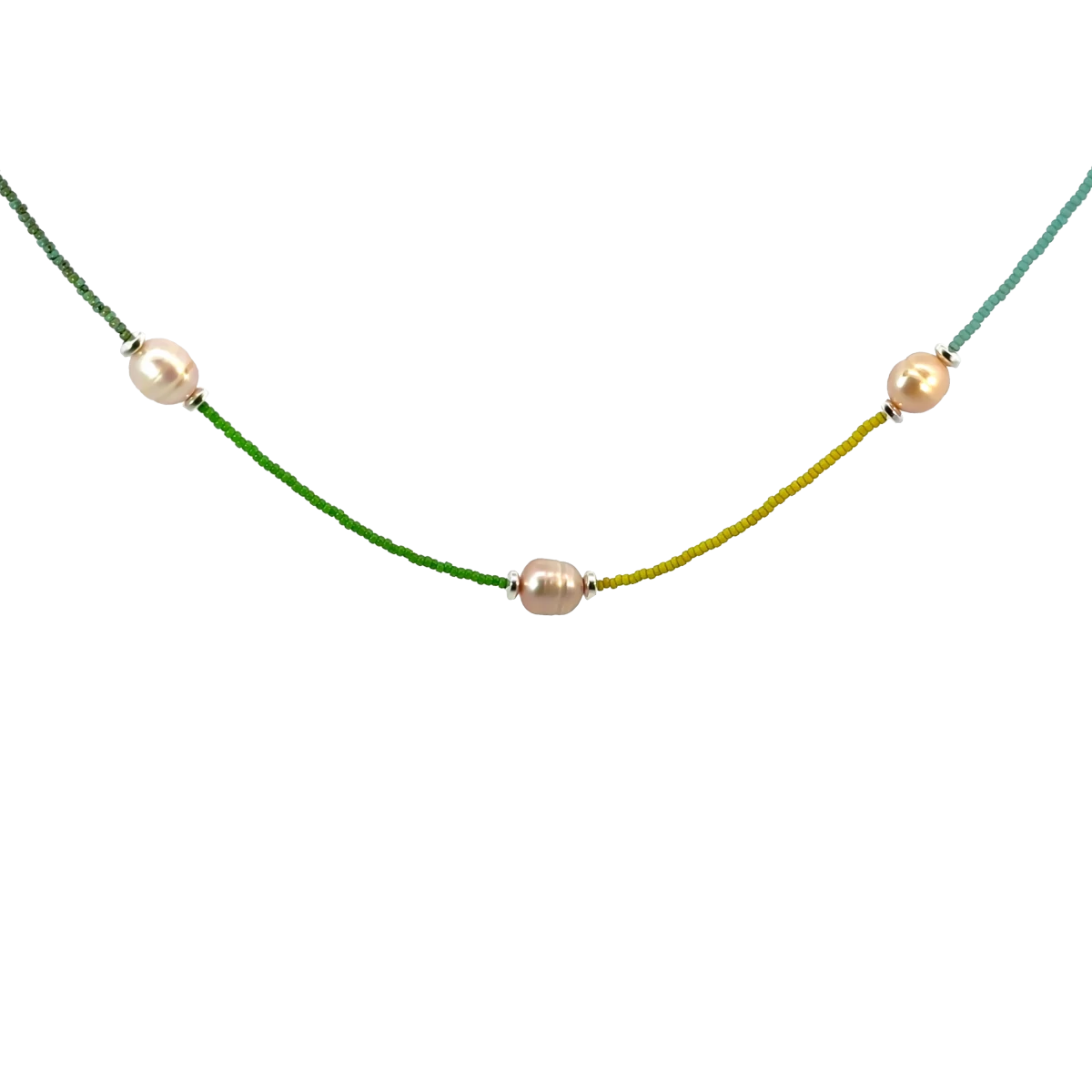 Náhrdelník Green Serenity spojuje 5 bílých sladkovodních perel a 4 designové korálky v tónech zelené. Jemný šperk s přírodní energií pro moderní ženu na každý den.