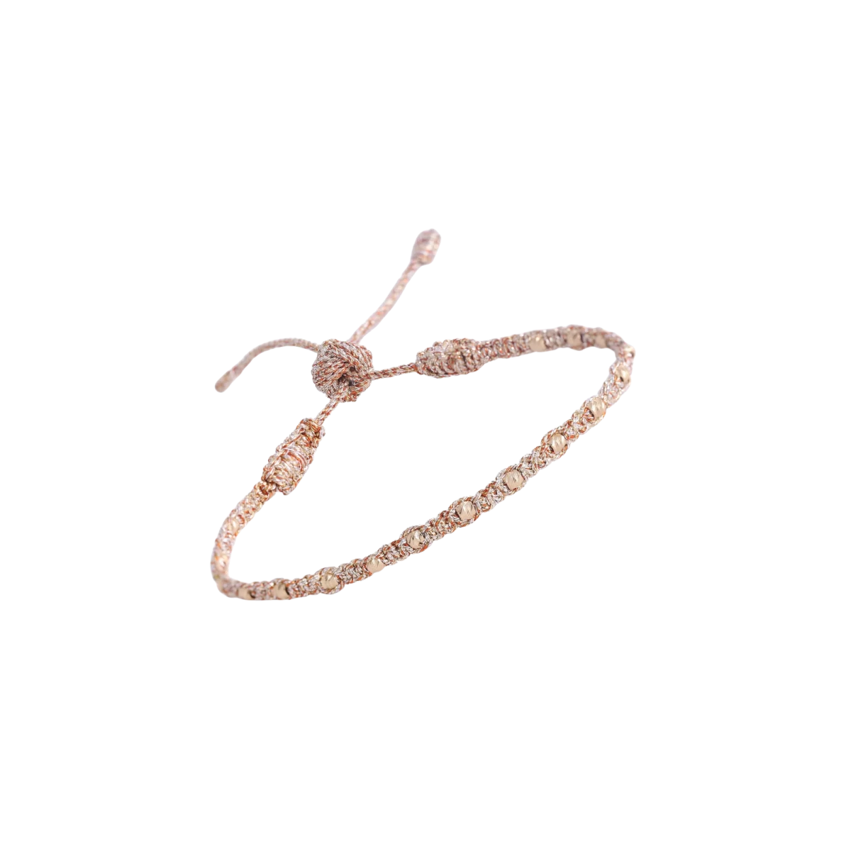 Objevte kouzlo náramku Maya Luna, kde se v harmonické rovnováze prolínají teplé tóny toffee, zářivé zlato a elegantní stříbrné nitě. Barvy navozují vytříbenou středomořskou atmosféru, zatímco dekorativní korálky v barvě 18karátového zlata zvýrazní zápěstí hravou jiskrou. Pečlivé detaily tradičního tkaní dodávají šperku moderní, lehkou eleganci a svěží letní nádech. Noste náramek Maya Luna při každodenních příležitostech, aby dodal každodennímu životu styl a radost, nebo jej zkombinujte s elegantním outfitem a zvýrazněte ženskou a zářivou stránku léta!