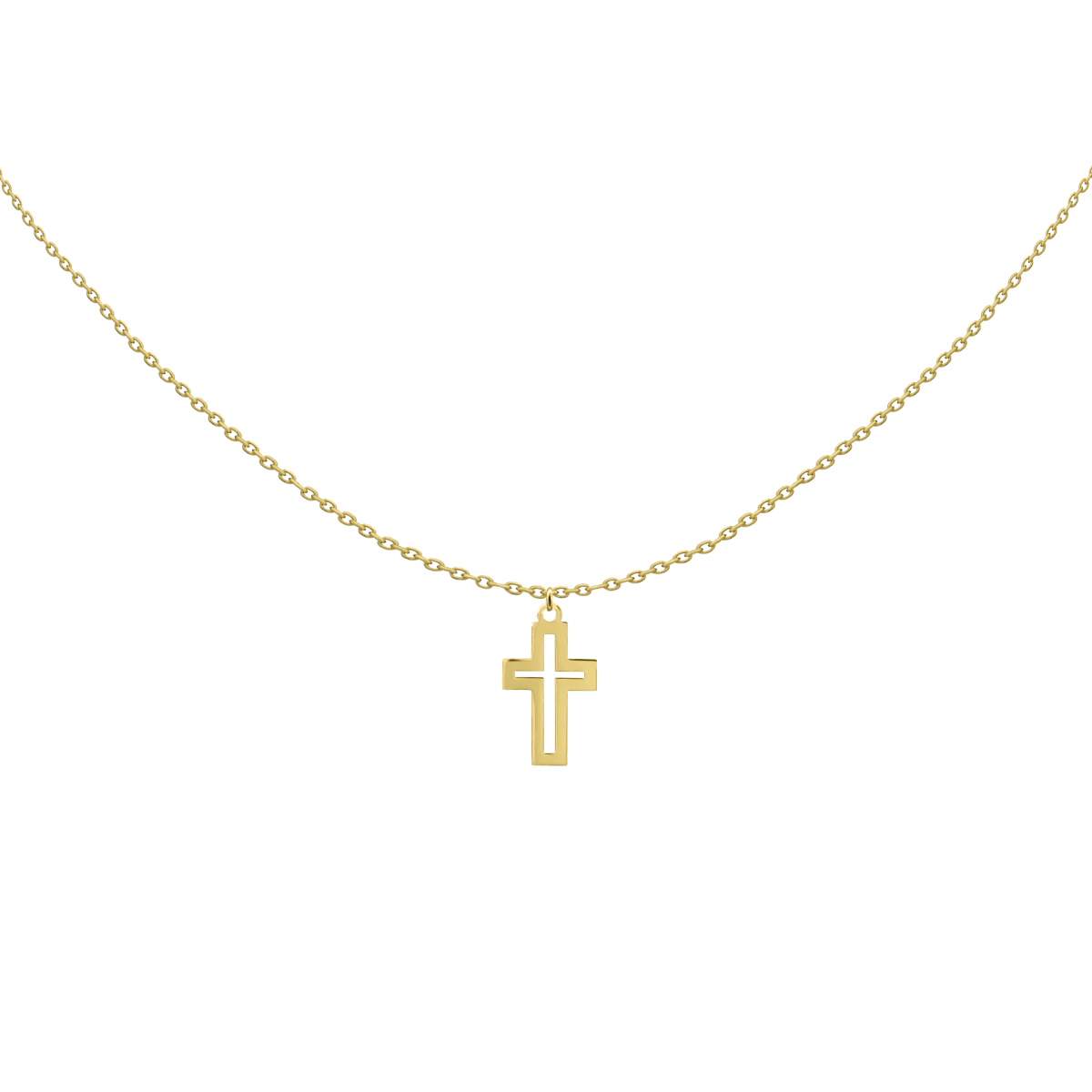 Jemný minimalistický náhrdelník s obrysovým křížkem vyzařuje rovnováhu a víru. Elegantní volba pro ty, kdo chtějí šperk odrážející vnitřní sílu.