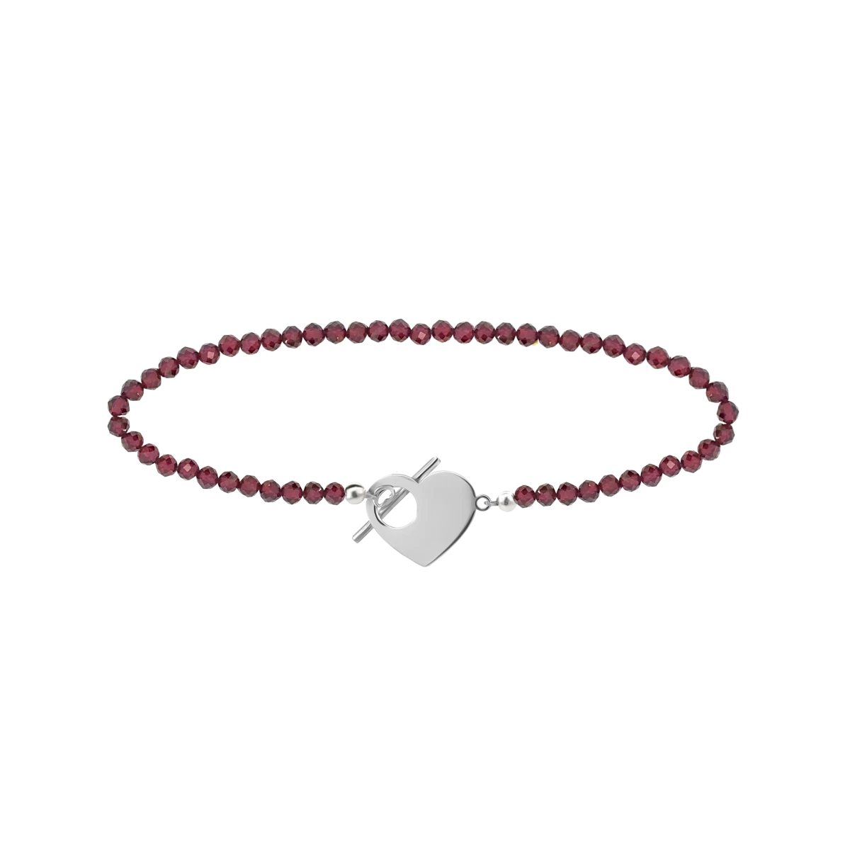 Náramek s granáty a zapínáním ve tvaru srdce ze stříbra Sterling Silver 925