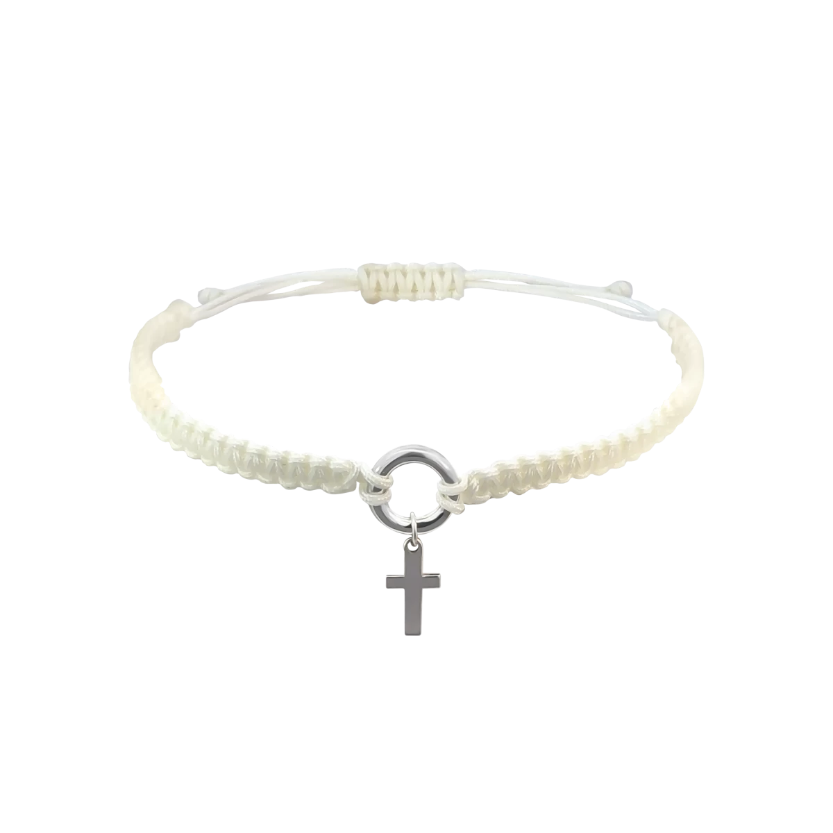Stříbrný náramek 925 s křížem a kruhem na macramé šňůrce elegantní dámský šperk