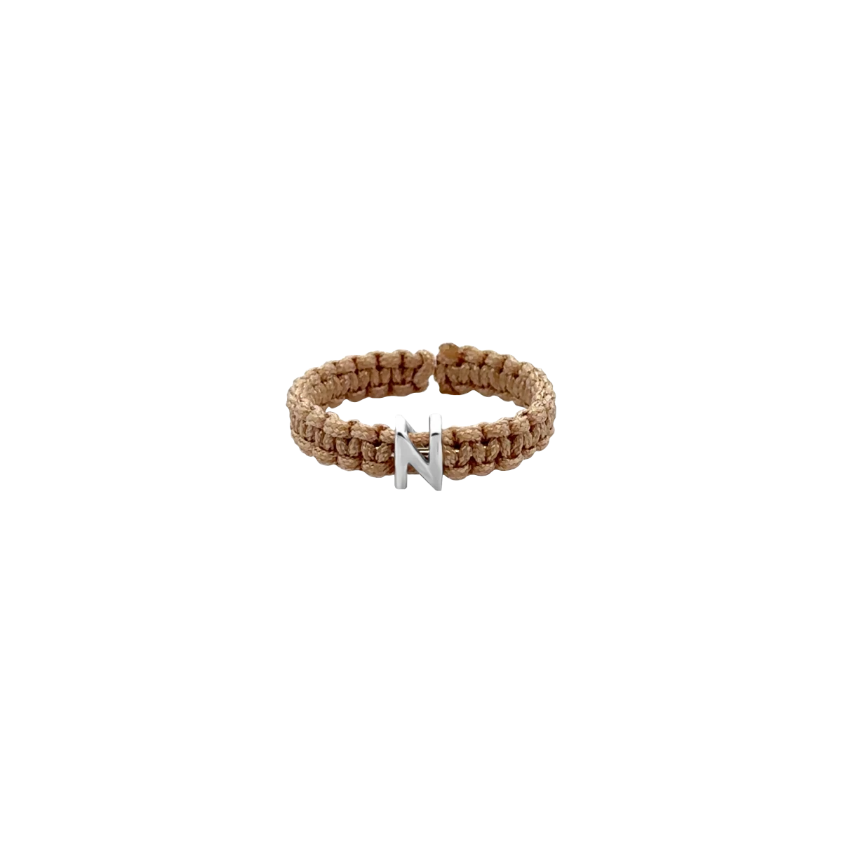 Makramé šňůrkový prsten s iniciálou ze stříbra 925