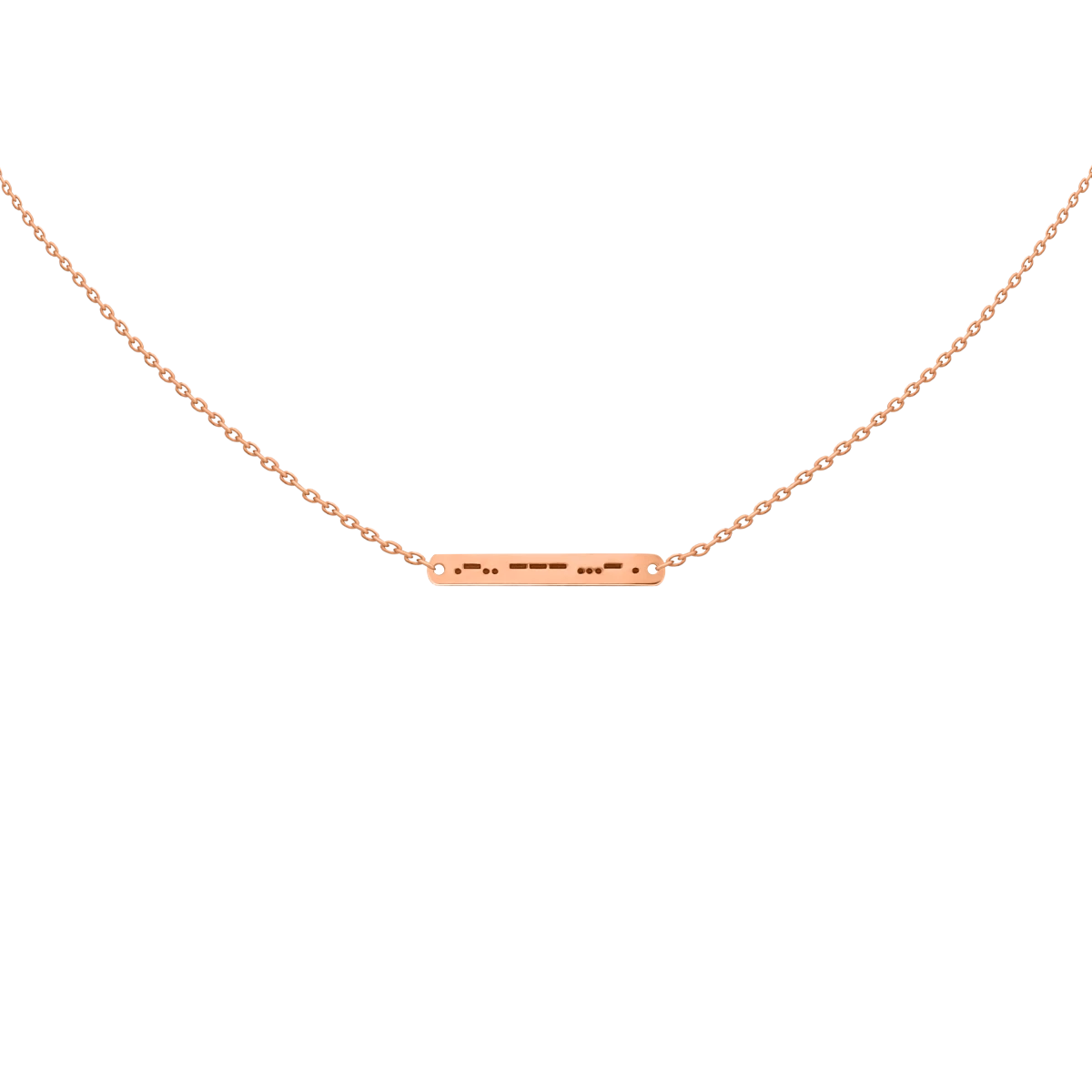 Náhrdelník z růžového zlata 585 s dlouhou destičkou a morseovkou Láska