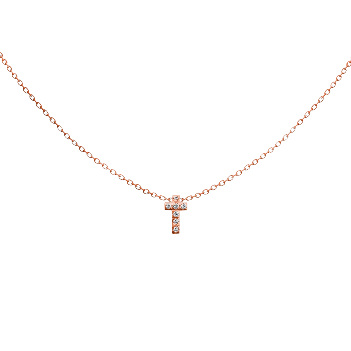 Náhrdelník z růžového zlata 14K s křížem se zirkony