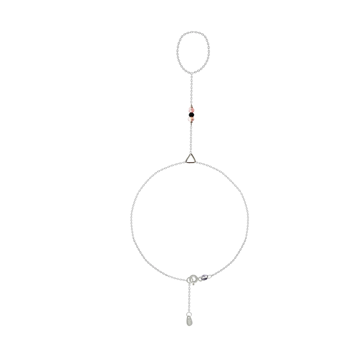 Rozlučte se s nudnými šperky díky této úchvatné kombinaci náramku a prstenu, která svým jedinečným designem, řetízkem přes hřbet ruky zdobeným barevnými krystaly, přitahuje každý pohled a dodá vzhledu svěžest a eleganci. Do poznámky uveďte velikost náramku i prstenu, a tvorbu také usnadníte změřením délky mezi zápěstím a prstem, na kterém budete prsten nosit.