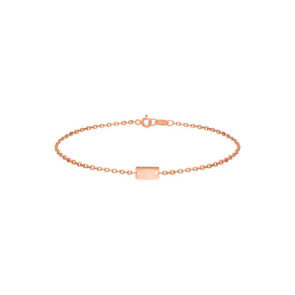 Jednoduchý obdélníkový motiv, který lze ozvláštnit vlastním gravírováním. Vytvořte na něj vzkaz, který lze s jistotou zvolit jako dárek nebo pro sebe. Řetízek je k dispozici ve dvou velikostech: 11,5 až 13 cm, 13 až 14,5 cm.