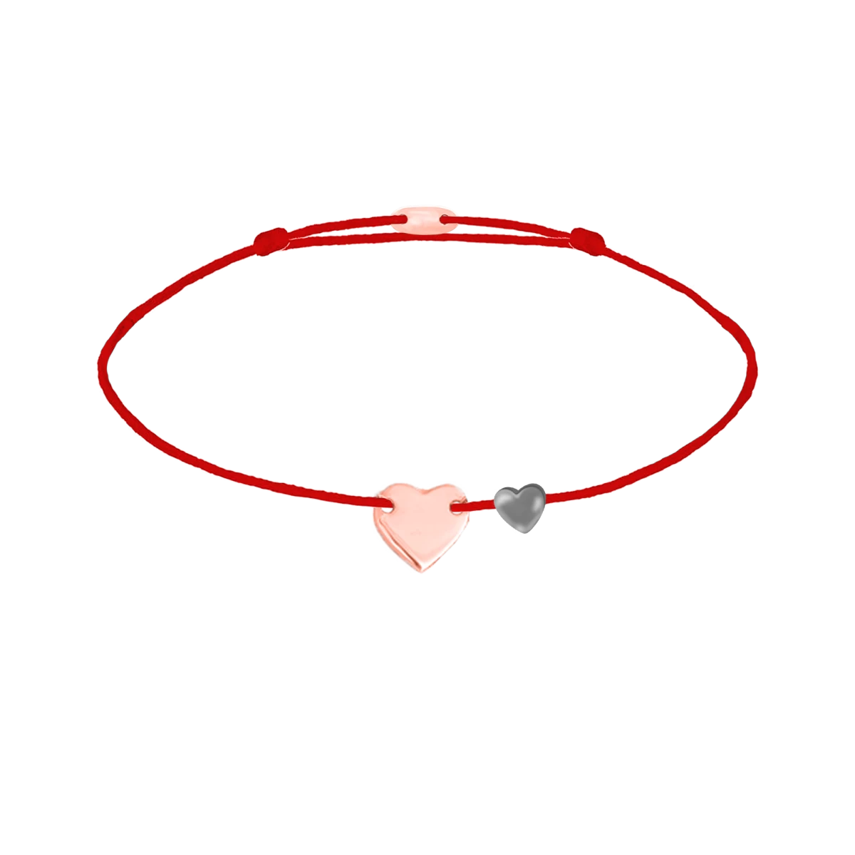 Provázkový náramek se srdcem z hematitu a růžového 14K zlata