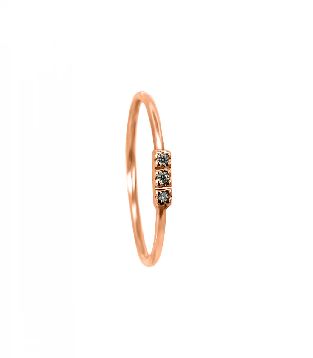 Růžovozlatý prsten s 3 kameny kubické zirkonie