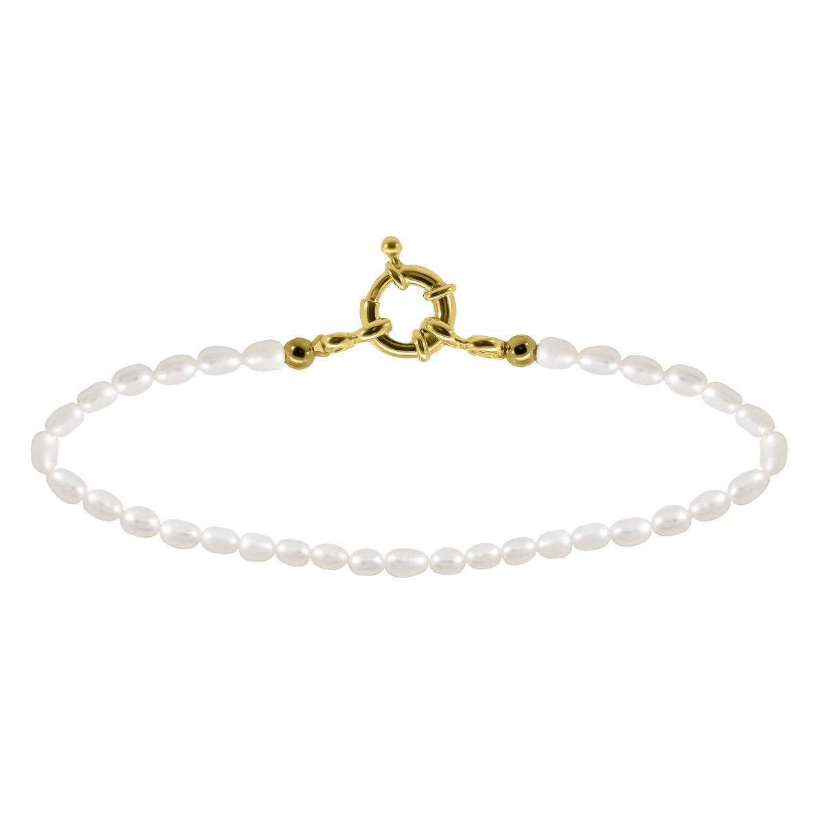 Dámo, pokud miluješ elegantní a nápadné doplňky, zamiluješ si tento letní náramek na nohu vyrobený z bílých sladkovodních perel ve tvaru rýže a ještě více zvláštní díky výrazné velké sponě z pozlaceného 18karátového žlutého zlata a 925 stříbra. Je ideální na pláž a jakoukoli letní událost.