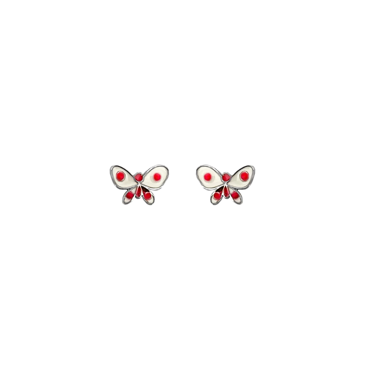 Dětské náušnice s motivem motýlka s bílými křídly a růžovými puntíky přinášejí radost i bezpečí pro nejmenší. Originální design podporuje hravost a jemně zdůrazní dětskou osobnost. Ideální volba pro první šperk vaší malé princezny.