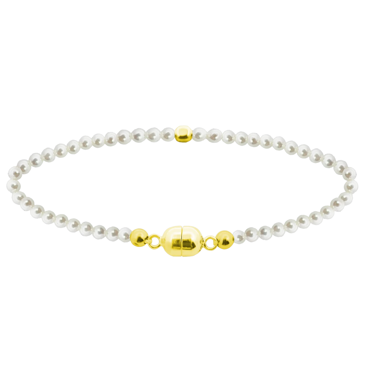 Náramek se sladkovodními perlami a pozlaceným magnetickým zámkem ze stříbra 925